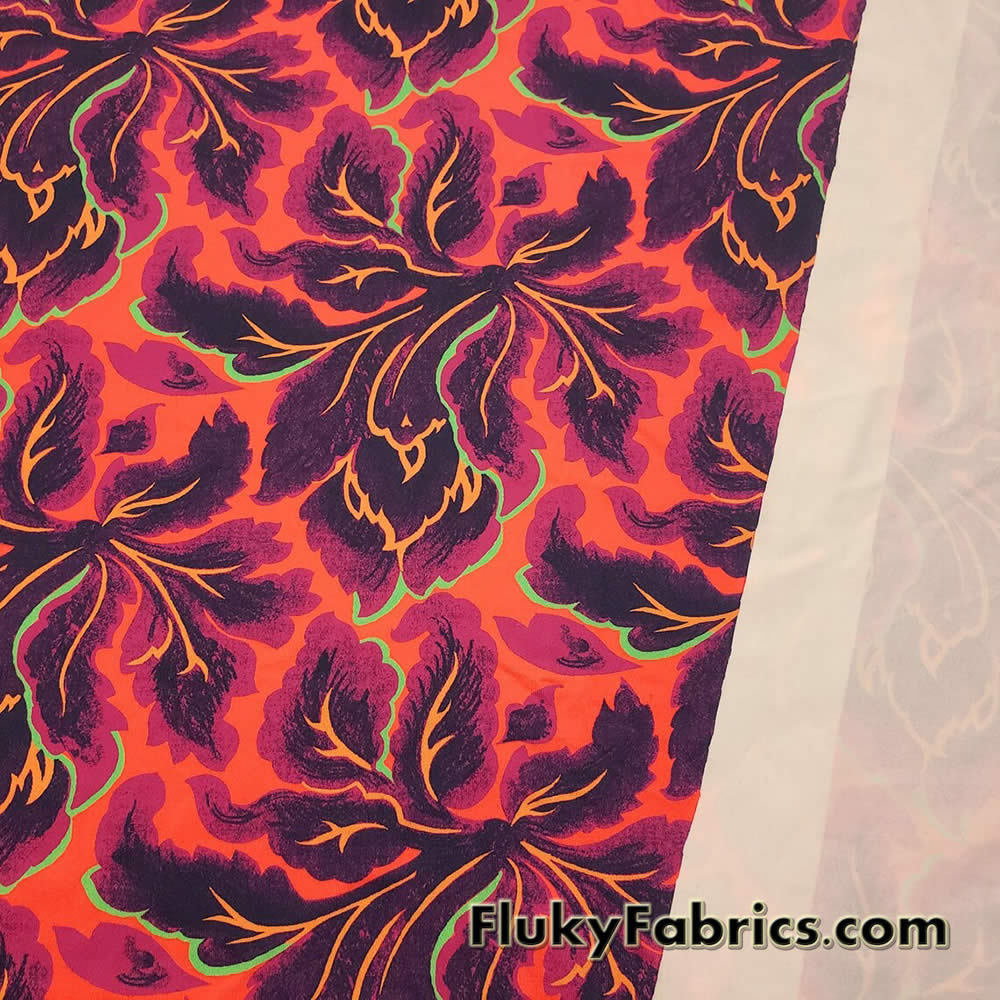 Abstract foliage print 4-way stretch light to med weight opaque nylon spandex bikini fabric.