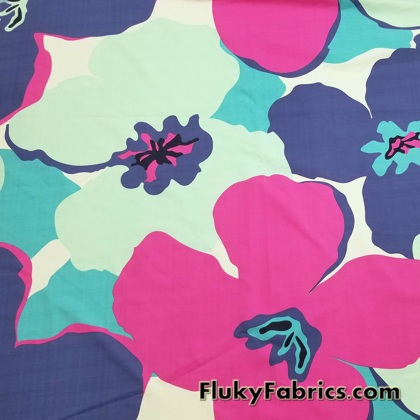 - Giant flowers print on a 4-way stretch light to med weight opaque nylon spandex fabric.