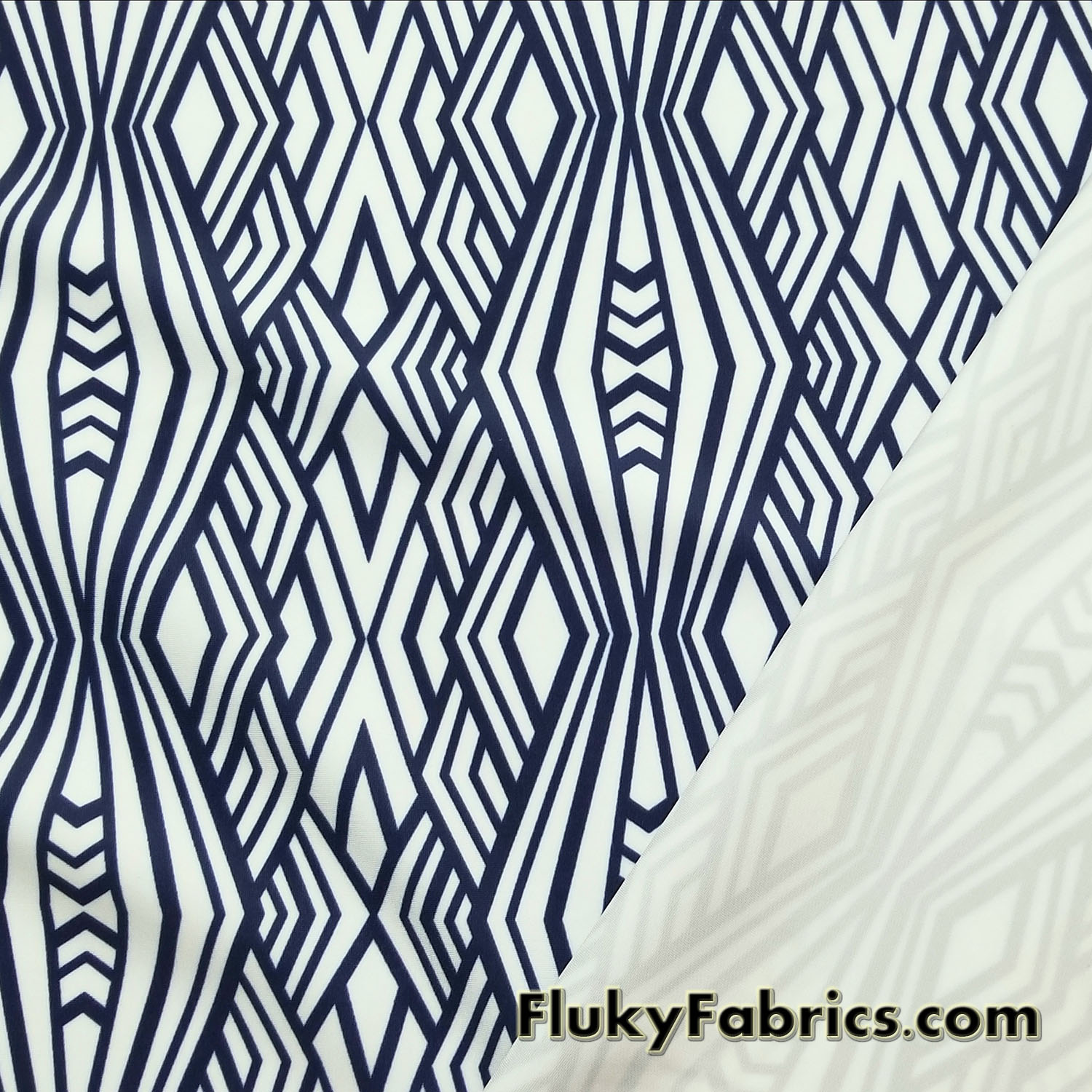 Navy and White Abstract Diamonds Print Nylon Spandex